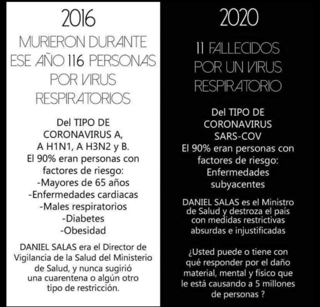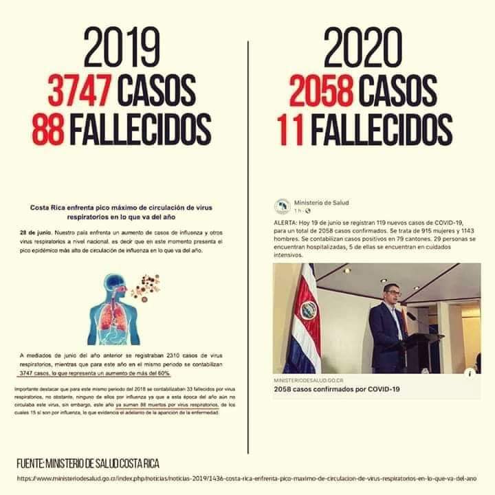 Años anteriores han existido cifras mucho más altas de muertes por males respiratorios, Sars e influenza(información posteada en esta página), en este y muchos otros países y sin embargo no ha sido declarada una Pandemia. Esto sólo deja ver claramente el dominio mental, intelectual y emocional que ejercen los medios de comunicación (que obedecen a intereses particulares)sobre las masas y evidencia que hay muchas otras razones político-económicas, así como ideológicas detrás de esta crisis mundial provocada, que muchísimos ya comprendemos.