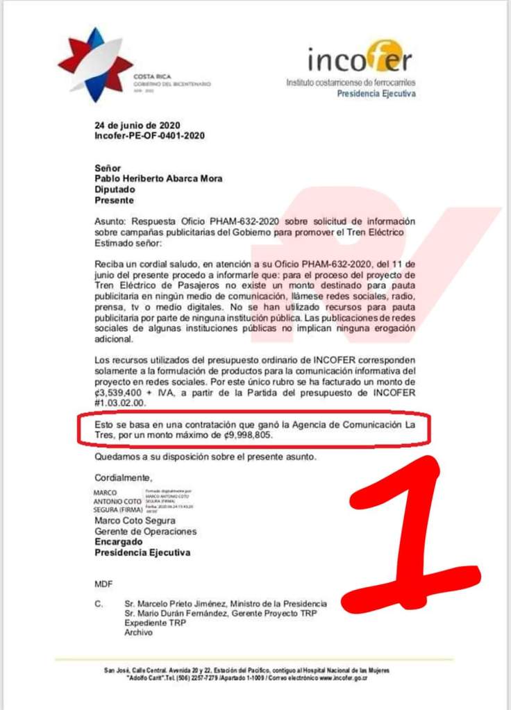 En una de las jugadas que parece que se pone del lado del pueblo, Abarca hizo una consulta al INCOFER (que es una empresa del Estado) donde les pide que le detallen los gastos de la inversión mega millonaria que está haciendo carlitos en publicidad para convencer a los incautos de la necesidad del trencito de la clau.
