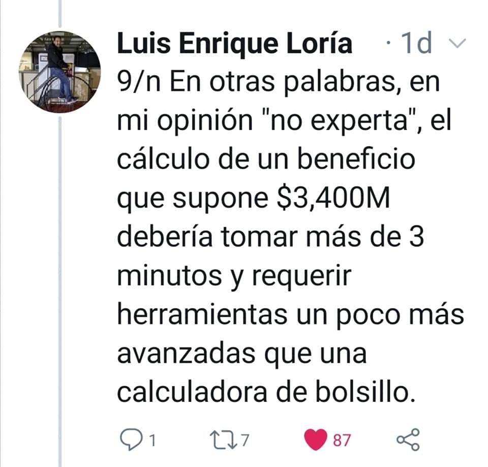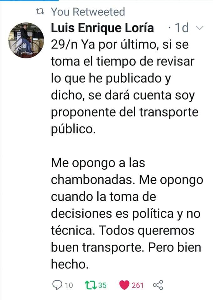 en cuanto al proyecto del Tren eléctrico de la Clau, el señor Loría se siente aludido y le responde con 29 tuits (29 argumentos),