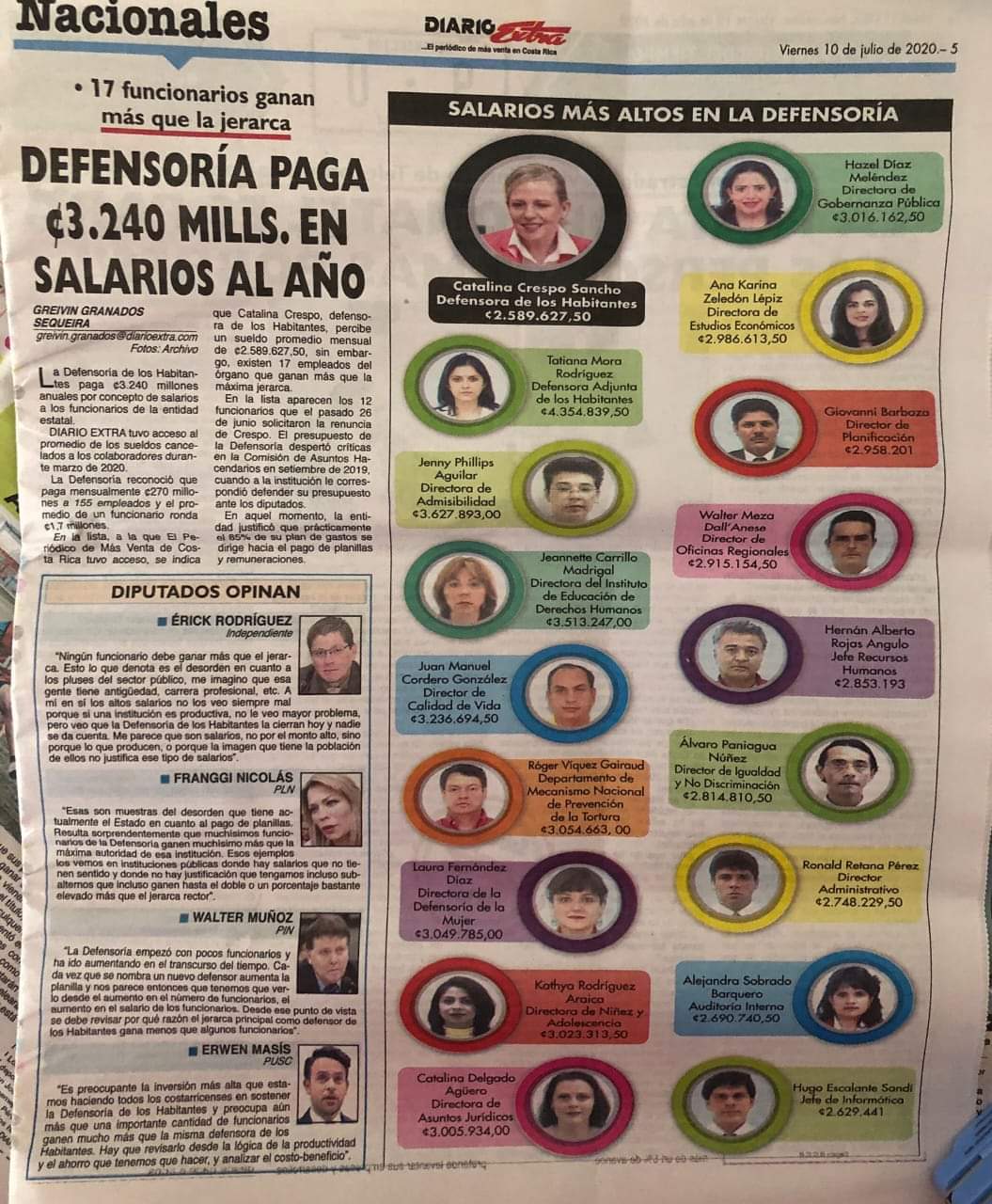• Álvaro Paniagua director de igualdad y no discriminación ₡2 814 810 y no sería lo mismo que la otra dirección dirigida por Jeannete Carrillo directora de derechos humanos con salario de ₡3 513 247.