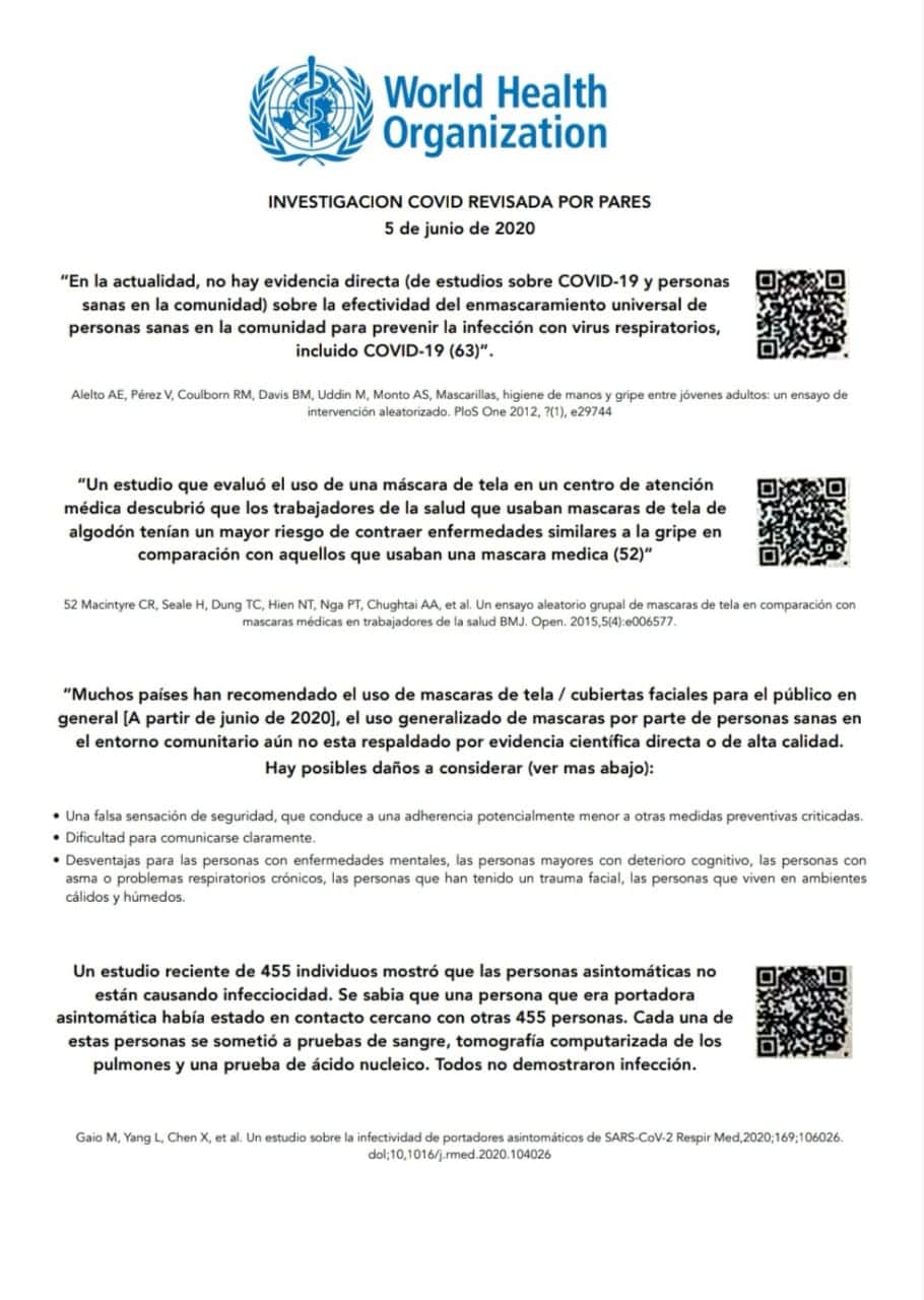 Según estudios recientes realizados por la misma Organización Mundial de la Salud, las mascarillas NO deberían de llevarlas los asintomáticos, el estudio menciona que es discutible si los portadores del virus COVID-19 asintomáticos son contagiosos.