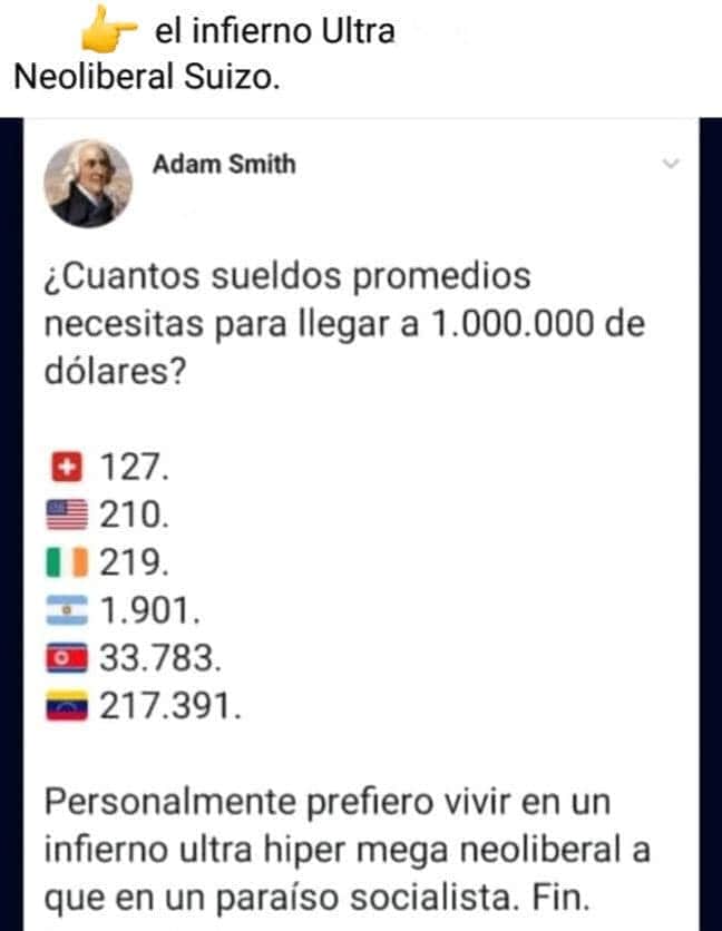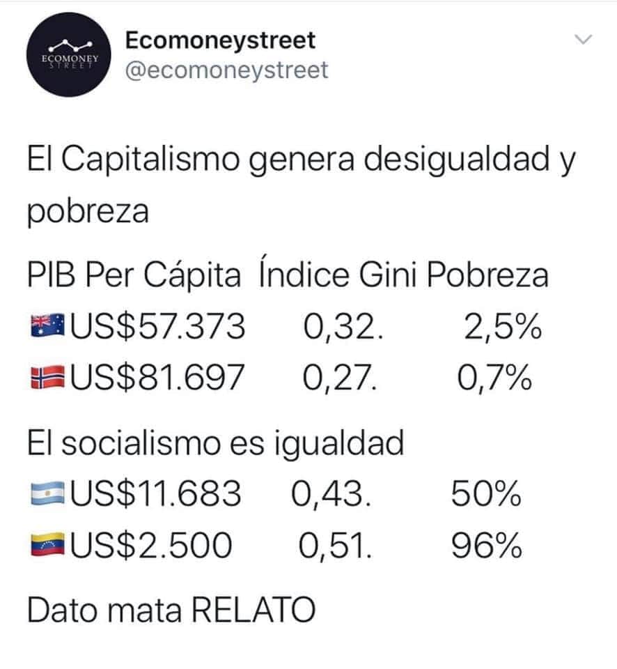 Mientras el capitalismo saca de la pobreza a cientos de millones de personas, el socialismo los envía a la miseria, solo basta observar el caso venezolano y el cubano, donde impera la miseria y millones de sus ciudadanos huyen a los “infiernos capitalistas”, escapando del “paraíso socialista”.