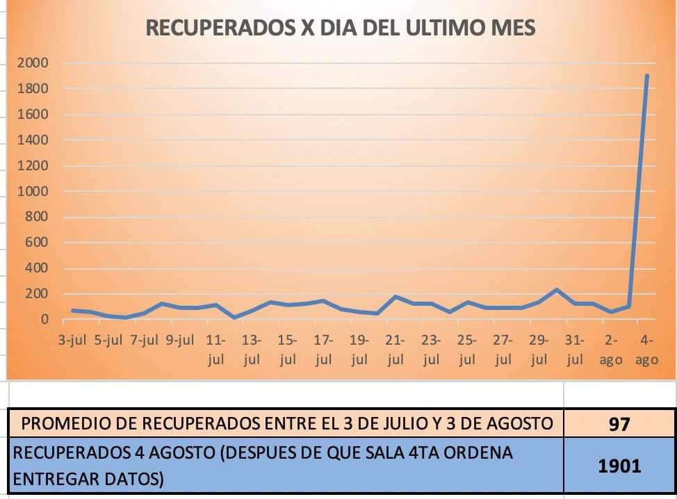 Después de la pronunciación de la Sala Constitucional se dispararon los recuperados del virus y pasamos de alrededor de 150 diarios a 1900 recuperados en término de 24 horas, ahora salen con excusas pero no les creemos nada señores, ustedes perdieron toda credibilidad.