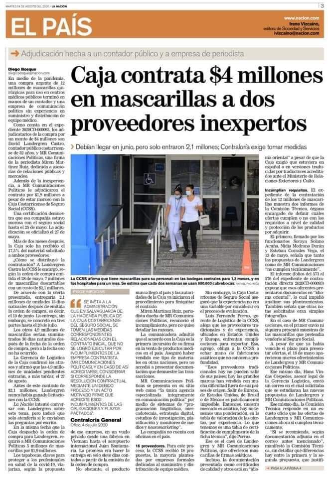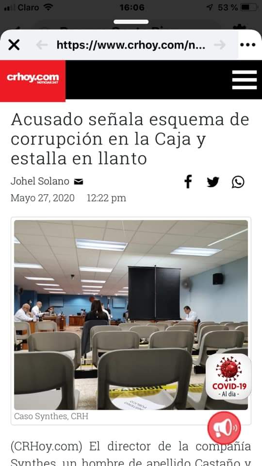 Con la cantidad de empresas cerradas y el aumento del desempleo, las finanzas de la CCSS se ven seriamente afectadas, de ahí que debe privar la transparencia y mejor uso de los recursos, por lo cual debe extirparse el cancer de la corrupción a todo nivel.