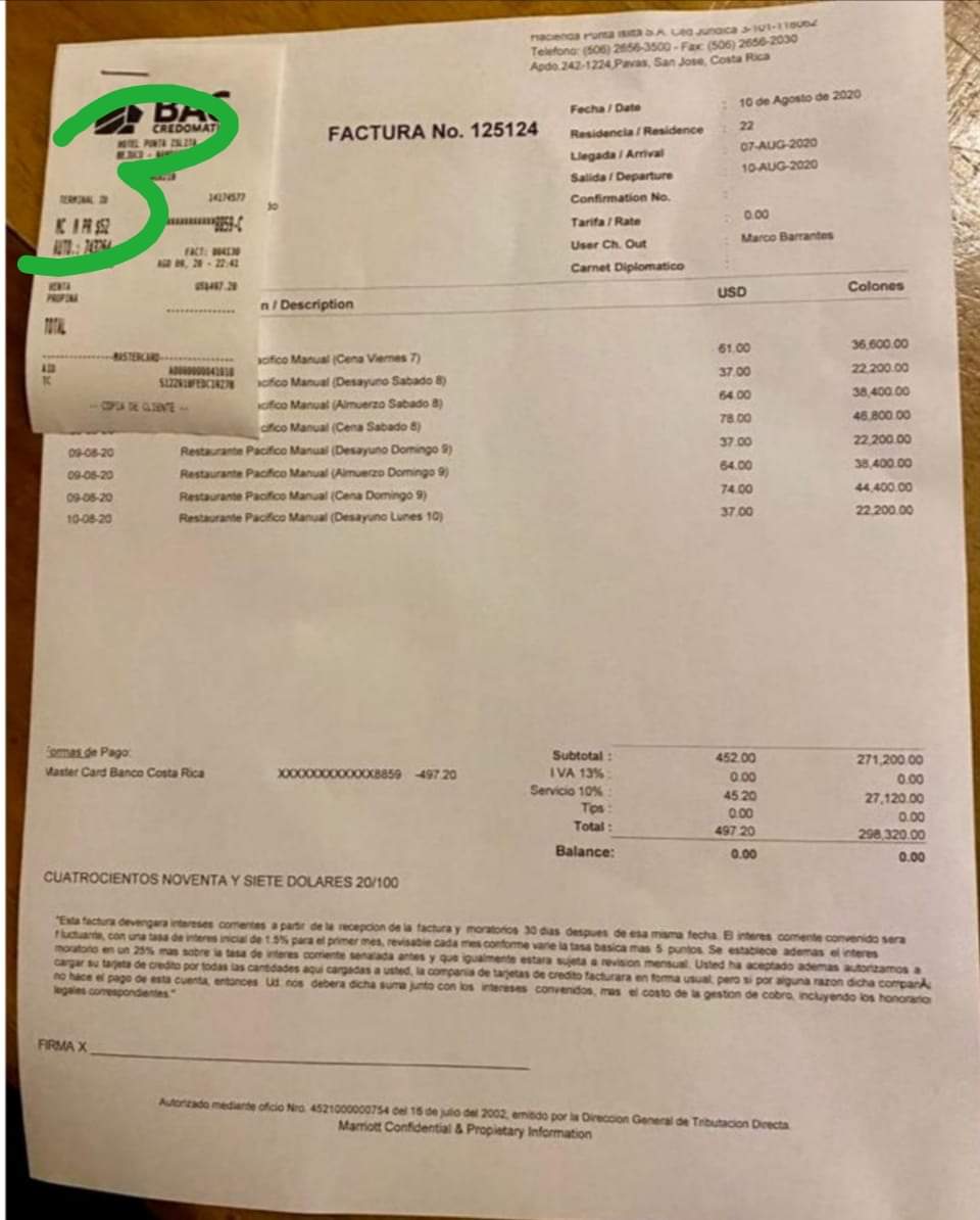 Como ya todos sabemos Carlos estuvo hospedado en el hotel Punta Islita Autograph Collection, pero lo interesante es que ese hotel cerró desde el 01 de abril y según ellos mismos, abrirá hasta el 01 de octubre. Entonces surgen las dudas, como emitieron facturas si el mismo está cerrado, de todas formas, no hemos visto facturas por hospedaje solo por servicio de restaurante, pero abrieron el hotel solo para el presidente y compañía??? (imagen 2 y 3) https://semanariouniversidad.com/ultima-hora/la-familia-garnier-abrio-el-hotel-punta-islita-solo-para-el-presidente/