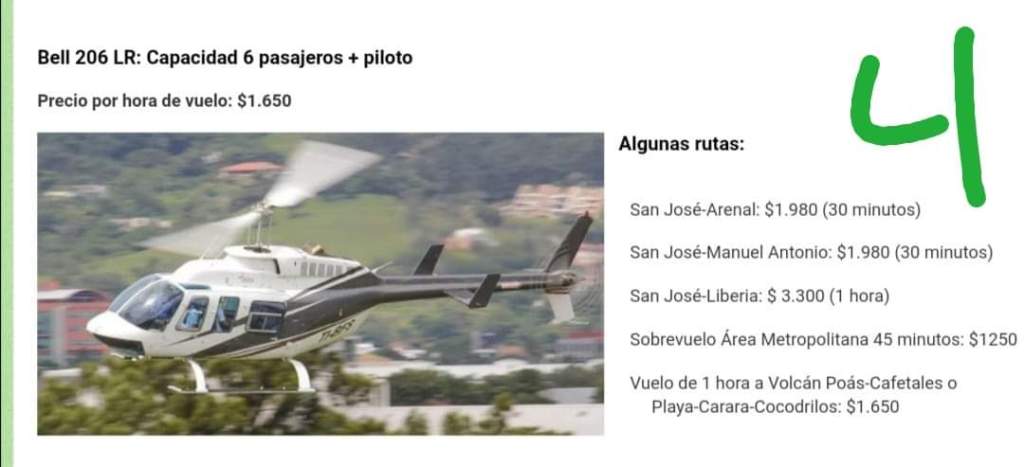Pero, peroooo, usualmente los vuelos en helicóptero hacia o desde la zona de Guanacaste tienen un costo de $3300 (imagen 4). Y es que además, en este vuelo venían 7 personas, o sea, aquello era una mezcla burbujeante, rompieron cualquier protocolo de distanciamiento e individualización de burbujas, pero es que ellos si pueden porque saben que esto de la pandemia es una farsa.