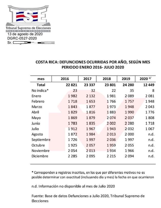 El primer muerto en Costa Rica por COVID, se presentó oficialmente en el mes de marzo, entonces, en la información que pedimos, solicitamos un detalle de muertos de marzo a la fecha EN LOS ÚLTIMO CINCO AÑOS en Costa Rica, y el resultado lo va a tirar de jupa como condorito.