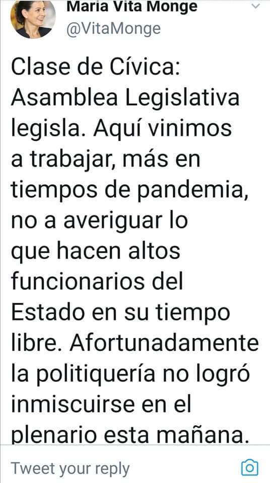 De donde cree usted que tiene suficiente solvencia moral, sustento académico y capacidad intelectual para venir a decirme que nos va a venir una clase de cívica de cómo se trabaja en la Asamblea Legislativa ?. Entiendo que a sus 5.86 asesores los puede impresionar con esas estupideces de comentarios, pero le recuerdo que ellos le pelan el diente porque reciben jugosos salarios por seguirle la corriente. De ahí en afuera, (además de la batería de troles PAC), le garantizo que no queda un costarricense satisfecho con su posición de encubrir la corrupción !!!!