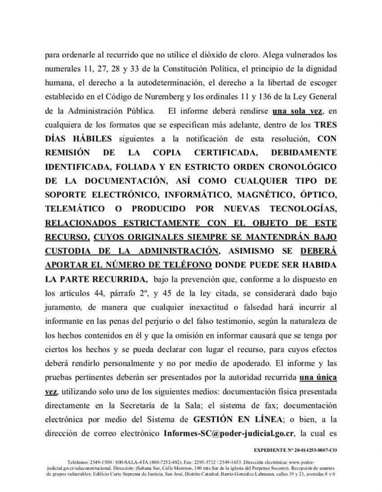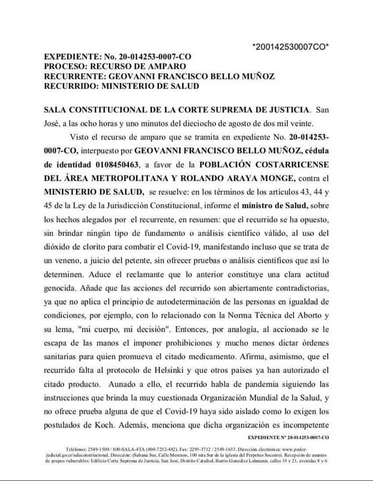 Costa Rica, dio luz verde para que se pudiera usar el dióxido cloro y así poder combatir el covid-19.