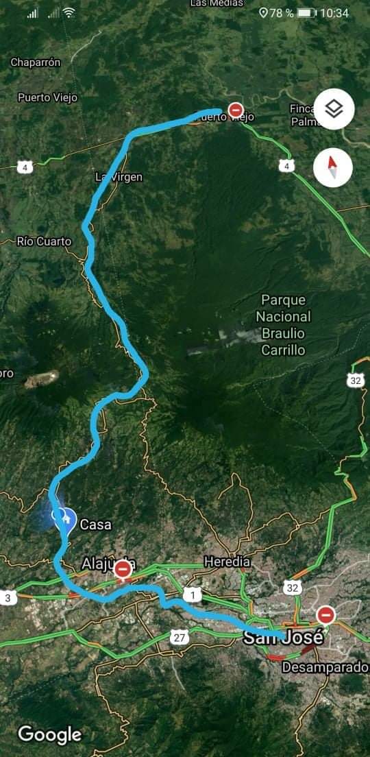 San José – Alajuela (por dentro), Alajuela – Poás, Poás – Poacito, Poacito – Vara Blanca, Vara Blanca – Sarapiquí y ahí ya llegaron (todo por dentro) a la zona norte (Crucitas, Pocosol, etc, etc, etc).