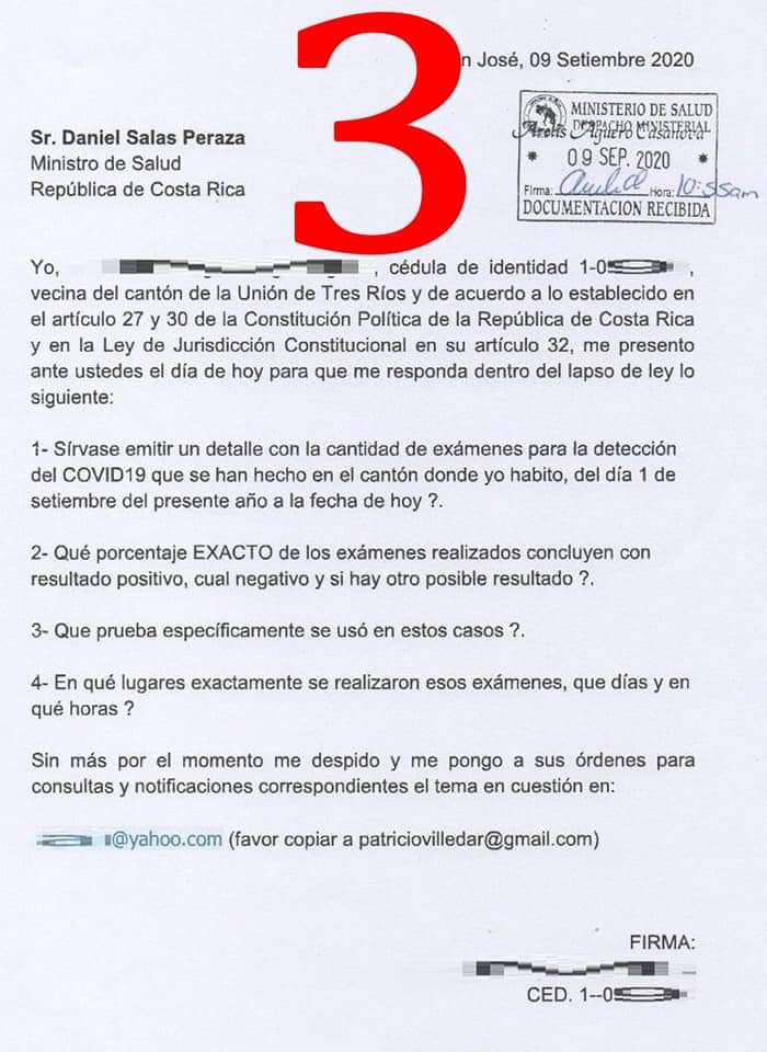 El día 8 de setiembre, nos sorprendieron con miles de casos nuevos de COVID, resulta que con una incidencia de casos positivos de 20 de cada 100 pruebas hechas, para sacar 1500 casos nuevos, debieron haber hecho como 50 mil pruebas por día, como en #todossomospatricio no nos chupamos el dedo y sabemos que la CCSS no tiene JAMÁS la capacidad instalada de hacer 50 mil pruebas por día (todos los días), les hicimos una consulta de un caso al azar… Tocó TRES RÍOS, les preguntamos por la cantidad de casos y los lugares y horas donde habían hecho esa cantidad de pruebas…. POR SUPUESTO QUE ERA UNA TRAMPA, y cayeron resbalaiticos, no existe posibilidad humana de hacer esa cantidad de pruebas en Costa Rica, es más o menos como 4 por minuto en 8 horas de trabajo (sin contar la hora de almuerzo de los examinadores). Entiende ?