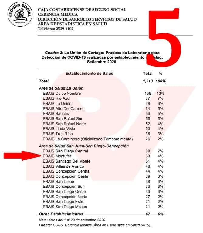 Esta imagen es un screenshot de una respuesta larguísima y super confusa donde nos “explican” la cantidad de exámenes que se hizo en cada locación en TRES RÍOS en el mes de setiembre 2020… OJO, SETIEMBRE DE 2020. Ahí está el oficio, yo NO ESTOY MINTIENDO NI INVENTANDO NADA. Nos dimos a la tarea de revisar selectivamente solo uno de los casos, y en esta imagen está marcado el EBAIS DE MONTUFAR, donde danny hizo 53 pruebas COVID en SETIEMBRE, es decir el 4% de las pruebas totales de ese mes en ese cantón (#3 de la provincia de Cartago).