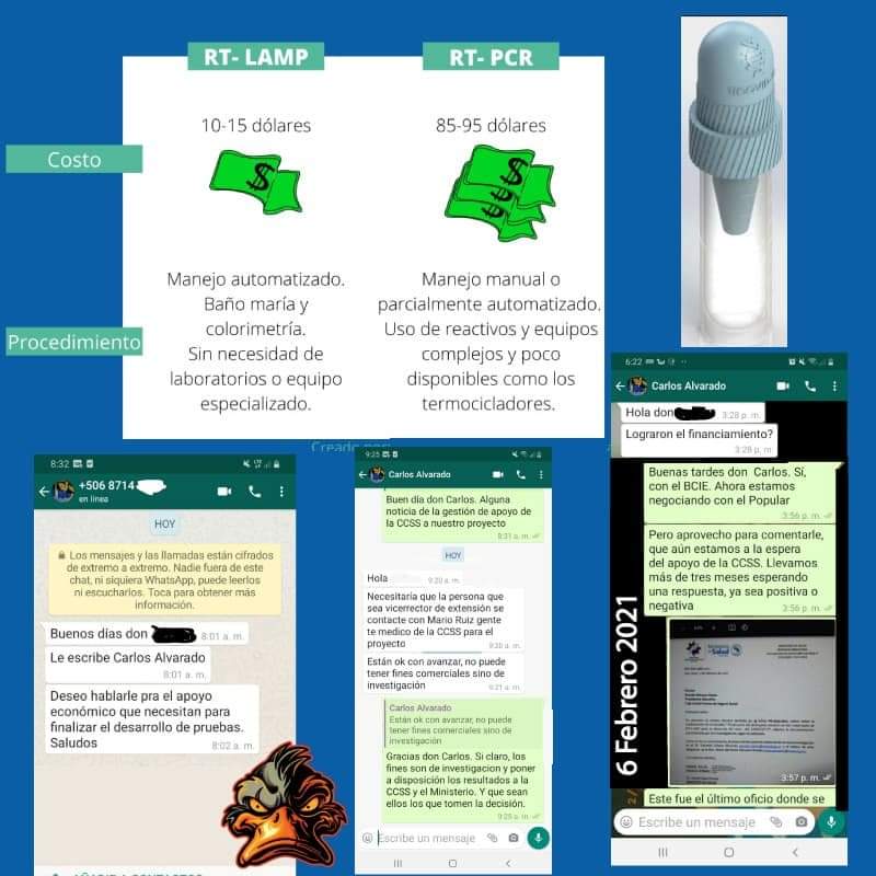 Vean, cuando toda esta patraña inicia, personas muy capacitadas (verdaderos científicos) de la UCR decidieron unir sus conocimientos y «expertise», para desarrollar en Costa Rica una prueba para detectar la enfermedad del KOBIK XIX, pero que fuera mucho más barata que la PCR (que le ha costado una verdadera fortuna al país) y que además tuviera otras dos ventajas, la primera era que fuera en saliva no siendo tan invasiva como esa otra donde con un hisopo parece que le miden el aceite del cerebro, y la otra es que el resultado se sabría en no más de una hora. Por supuesto que en Costa Rica tenemos esa capacidad Y MÁS, y si no fuera por los choriceros que nos gobiernan, seríamos potencia en muchos campos.