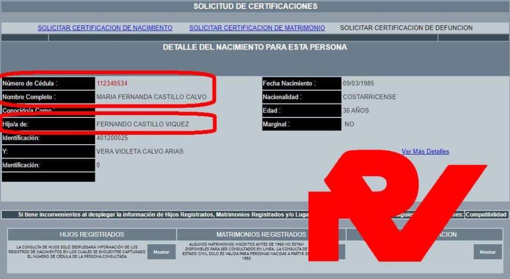 Resulta que el señor CASTILLO tiene una hija… (HIJA, HIJA BIOLÓGICA, CARNE DE SU CARNE, SANGRE DE SU SANGRE), que se llama MARÍA FERNANDA CASTILLO CALVO, cédula de identidad 1-1234-0534, y nació el 09 de marzo de 1985, o sea hoy tiene 36 añitos recién cumplidos.
