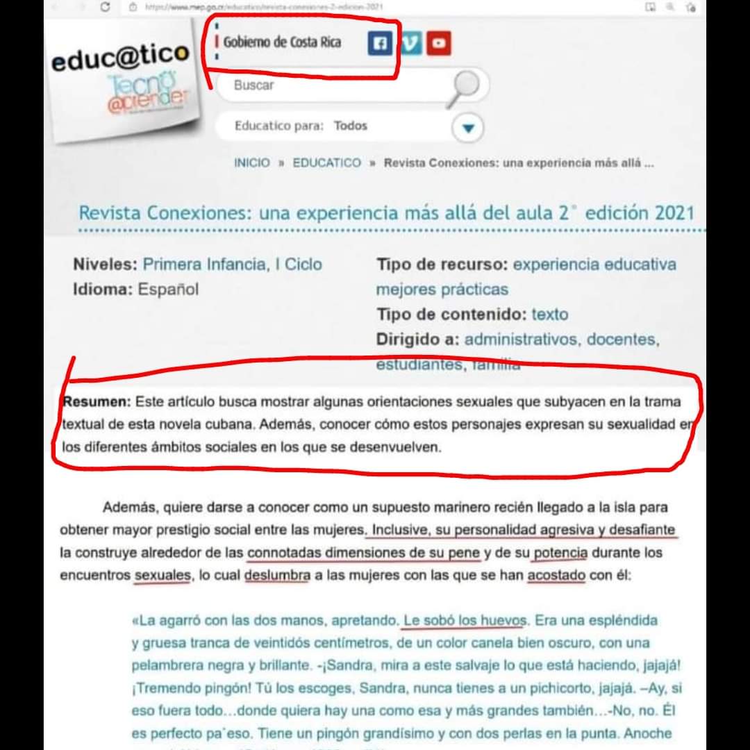 El deterioro sistematico en todas nuestras instituciones publicas de este cartel de mafiosos agrupados en el PAC no tiene limites , no han respetado ni la inocencia de nuestros niños para ir introduciendo todo tipo de ideologias opuestas a nuestros valores , heredados de nuestros abuelos , escritores como : Carmen Lyra , Carlos Luis Fallas , Joaquin Garcia Monge , Fabian Dobles , etc se deben estar revolcando en sus tumbas , ante tanto atropello de estos corruptos liderados por CARLOS ALVARADO.
