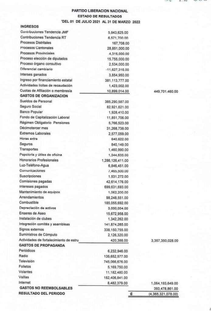 Con razón en el PLN estaban enojados con JMF, se gastaron más de ¢4 mil millones, le deben ¢4,195 millones al BCT, y hay que ver cuánto les reconocen de deuda política para el corte de Junio a ver si no terminan en rojo para las próximas elecciones.