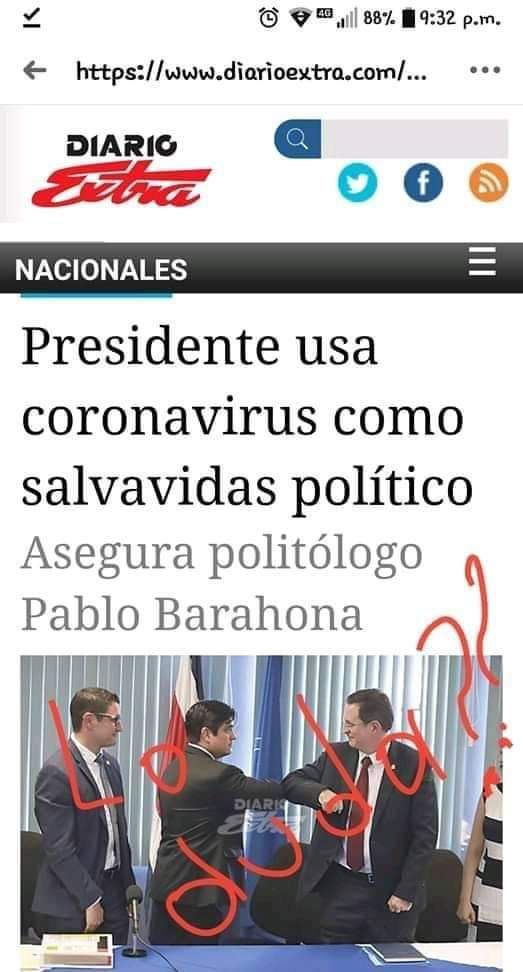 El día de ayer me llamó con extrema atención la denuncia pública que Randal Ribera de Monumental hizo sobre el manejo de la pandemia y la información que el #Poder #Ejecutivo transmite día a día a la población (No es el Ministerio de Salud) es decir toda la información es #manipulada desde #Zapote donde un … Sigue leyendo ¿Será que aún sigue creyendo en las plazas públicas disfrazadas de conferencia de prensa sobre Covid 19?