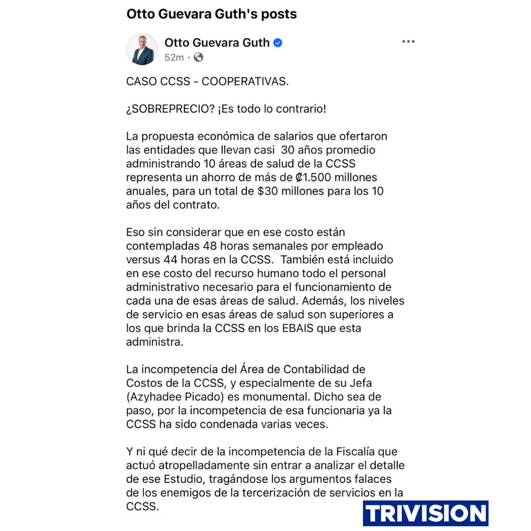 ¡Caso CCSS – Cooperativa!.. “La propuesta de la CCSS representa un ahorro de más de ₡1.500 millones anuales, para un total de $30 millones para los 10 años del contrato” Otto Guevara. El exdiputado Otto Guevara señaló que por el contrario de lo que señala la Fiscalía, no existiría un sobreprecio en los contratos sino … Sigue leyendo ¡Caso CCSS – Cooperativa!..
